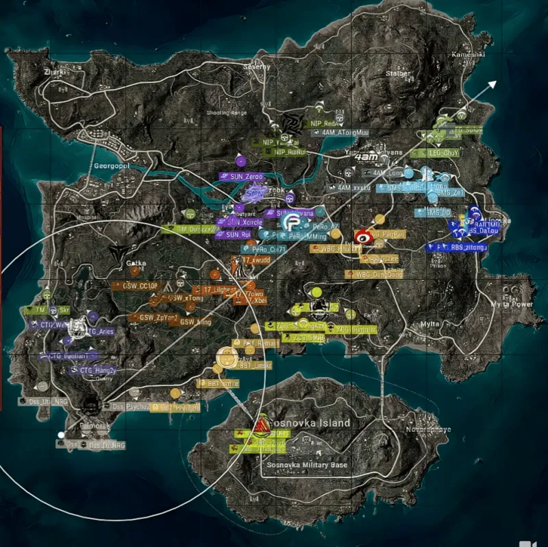 本局决赛圈位于矿山西南侧野区。